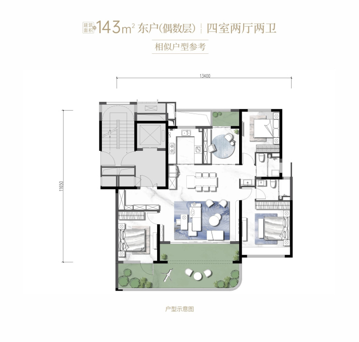 产品面积:建筑面积约143-182㎡ 奥体全新空中院落著品