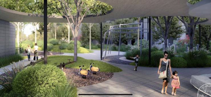 森林包围建筑,建筑包围森林。打造森宇星空的公园式社区。下沉式园林景观