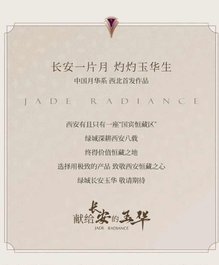 源于绿城月华系的人文艺术审美模式,长安玉华通过对在地文明的梳理与挖掘、配合国际化、当代化的艺术风尚与生活范式,建构出兼具在地人文性与国际艺术性的当代的美学故事。