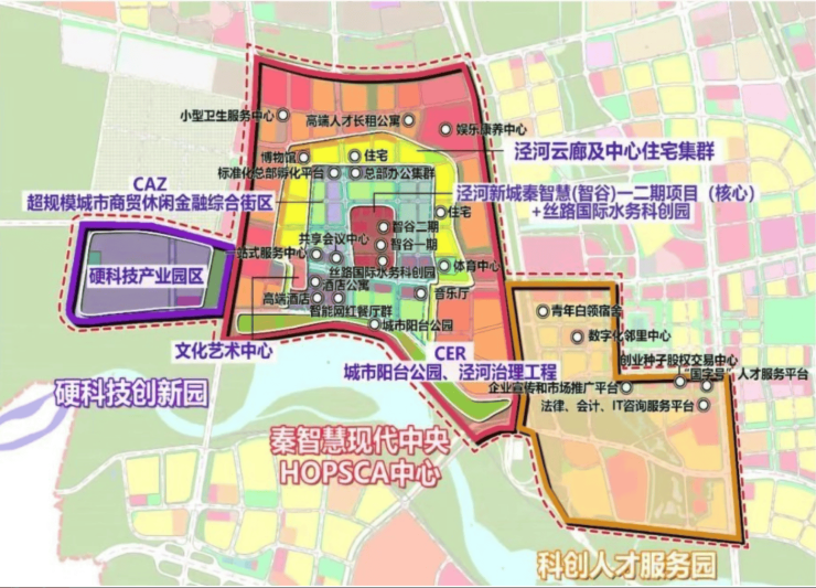 *4横主干交通:原点大道、高泾大道、泾河大道、沣泾大道