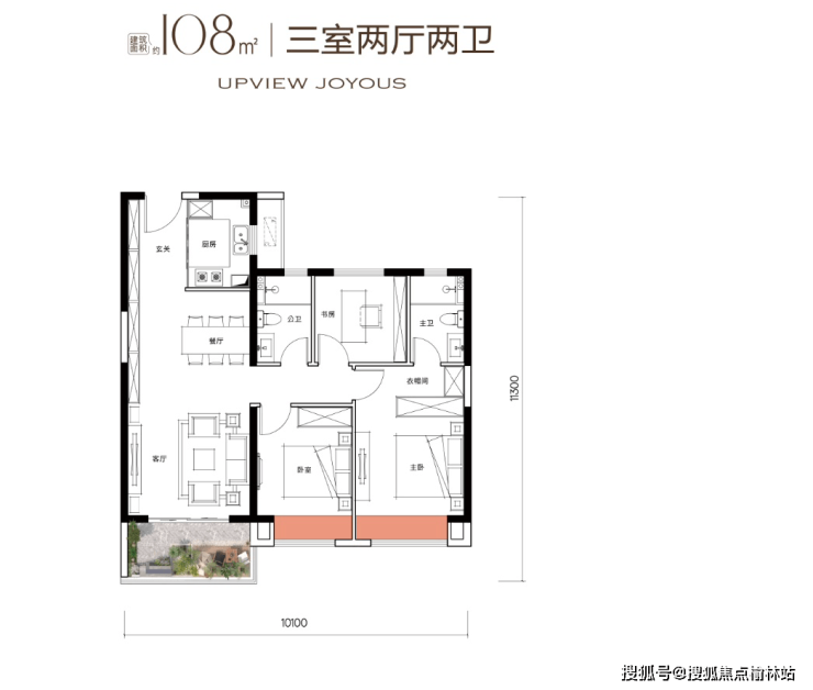 1.108㎡三室两厅两卫南向瞰景阳台,延展客厅的悠然时光。约70公分进深南向飘窗蹭送邂逅四季美学。奢阔主卧套房,步入式衣帽间,奢适休憩世界。