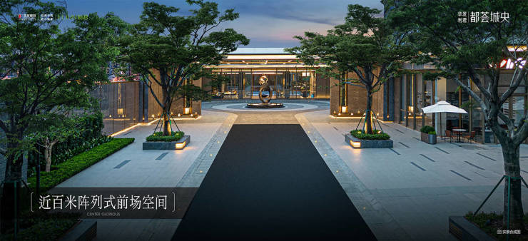 近百米超阔尺度阵列式前场空间,与商街形成超长城市延展面,营造大气雍容的归家前序空间。