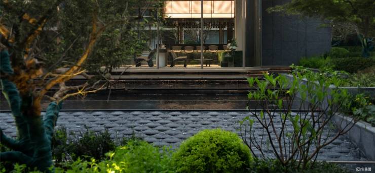 汲取宝格丽酒店迎宾礼遇,打造近600㎡环岛式落客庭院。庭院中岛甄选顶级石材“绿钻”潘多拉奢石,设计莫比乌斯环水景艺术雕塑,呈现奢适雅静的归家体验。