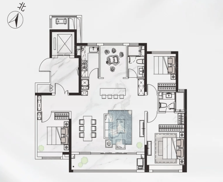 A2户型:4室2厅2卫1厨, 建面143.00m²