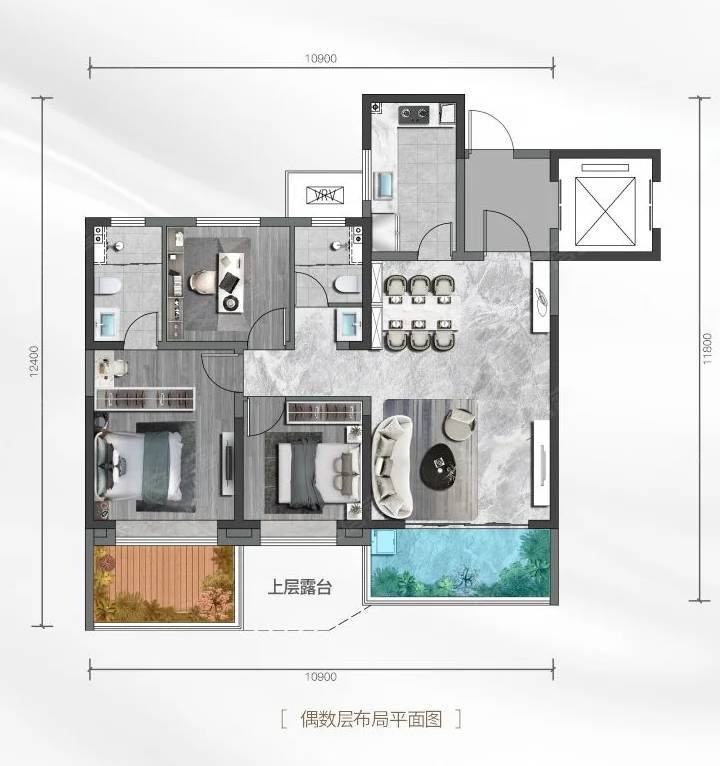 ·悬浮院境:约6米挑高空中露台,家家有花园、户户有院落、处处是风景。