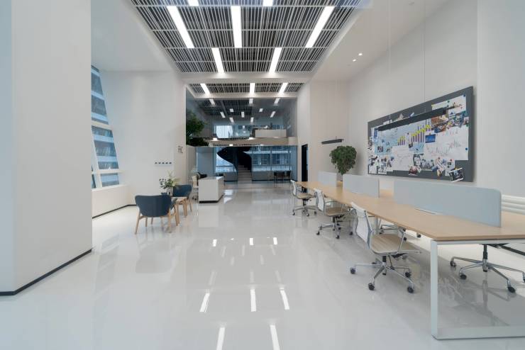 项目景观绿化与1800多亩汉城湖遗址公园遥相呼应,同时与自身庭院绿化、垂直绿化、廊桥绿化、屋顶绿化等形成五重绿化屏障,创造花园办公的舒适氛围。项目自身实现“15米内看树,15米以上观城”的垂直绿化氛围。