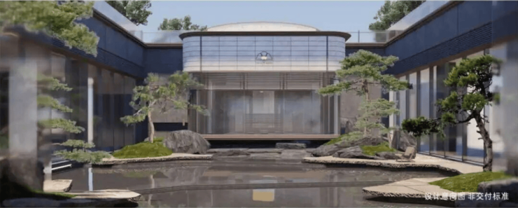 门庭景观,借王维"草色摇霞上,松声泛月边“的意境静水映月,松风迎宾,奢石列阵从56米阔绰大门至宅邸,步移景异以山水为序,以精工为韵让归家成为穿越唐风的雅致旅程