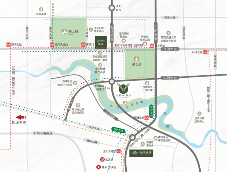 【交通】①坐拥“四纵四横”路网:正阳大道、泾晨路、茶马路、秦汉大道;原点大道、高泾大道、泾河大道、沣泾大道。