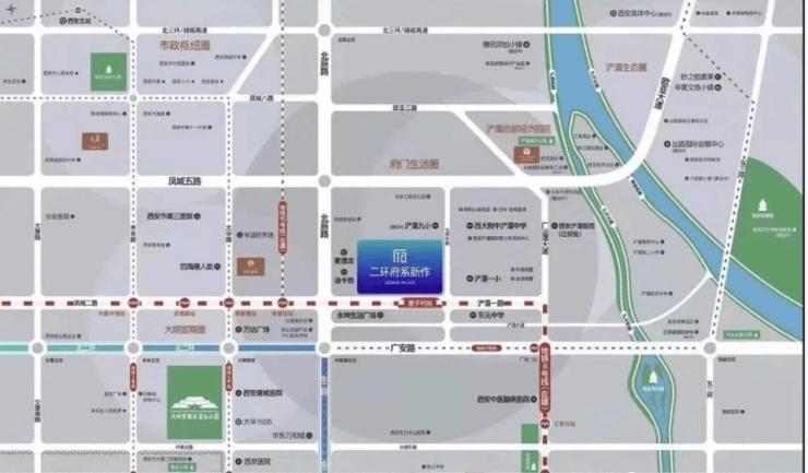 3.医院:西安北环医院、西安浐灞医院(已规划)、西安市第三医院、西京医院、西安中医脑病医院。