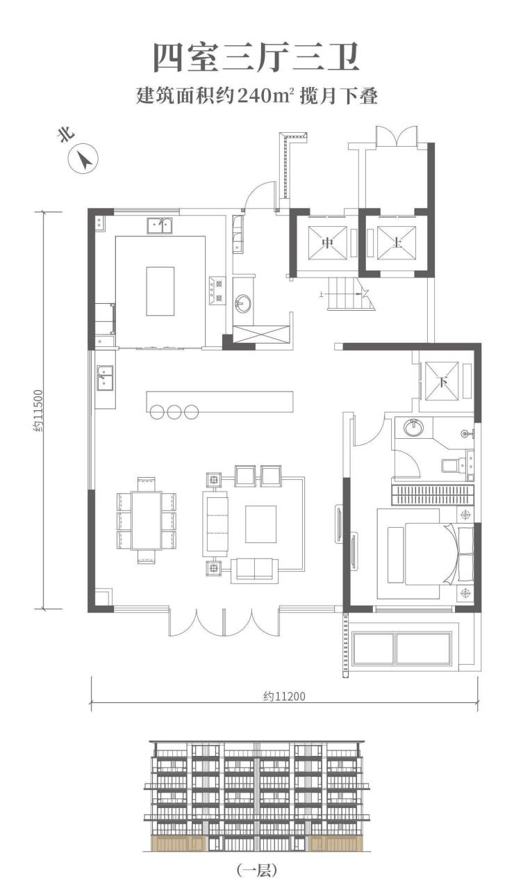 梯户比:大平层2T2(面积237.267)叠拼1T1(下叠240.中叠249.上叠279)