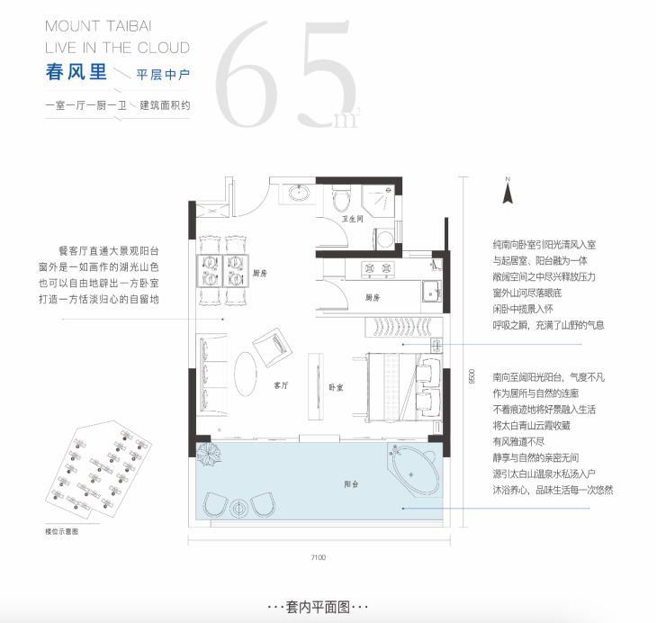 巨幕阳台:太白山同类型产品最大尺寸阳台,进深2.4米,开间7.1米~7.7米