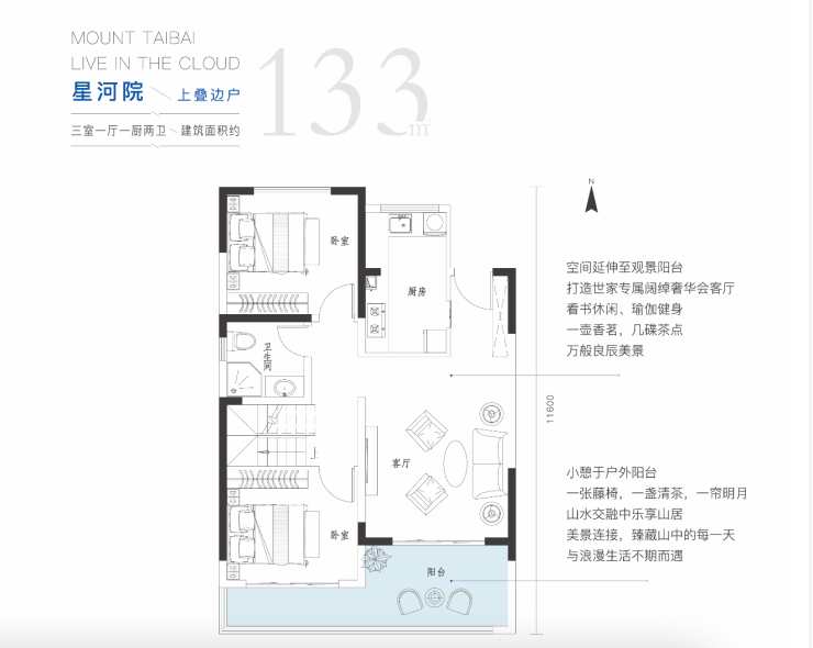 朗阔挑高:太白山同级别产品层高最大3.1米,下跃挑高6.2米