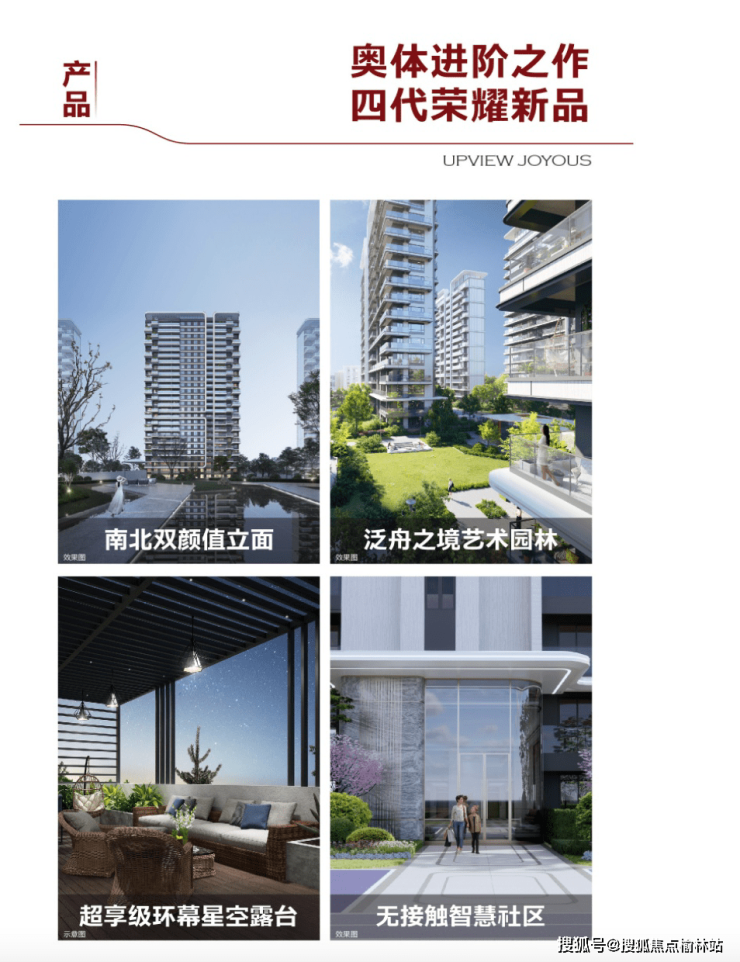 1、 双颜值立面:作为国际港务区西北门户,打造南北双颜值峯范立面,所有楼栋窗户采用蓝色全系三层中空low-e玻璃;优雅曲线游走于天际,代言奥体新一代标杆建筑美学 ,270°全幕景观视野。