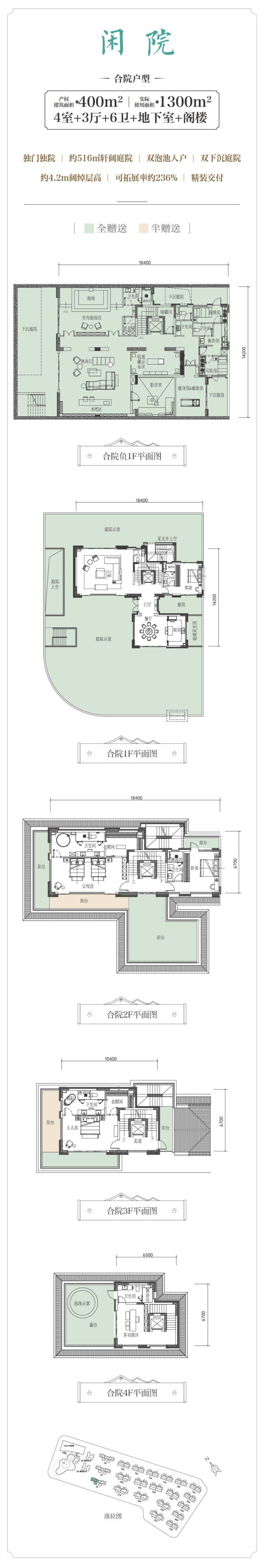 合院丨产权建筑面积约400㎡,可拓展率约230%,实际使用面积约1300㎡