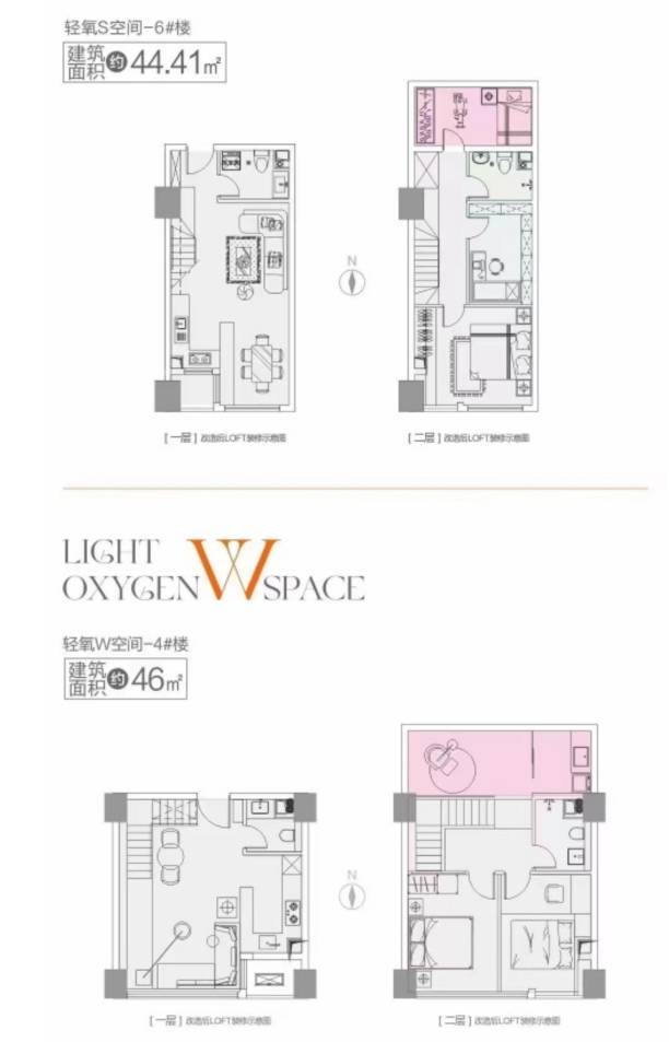 双气入户,上下动静分层,精彩N+1约40m-74㎡百变潮空间,层高5.4米,一层投入,双层享受,楼上楼下,工作&生活切换自如,成全心中的理想生活。