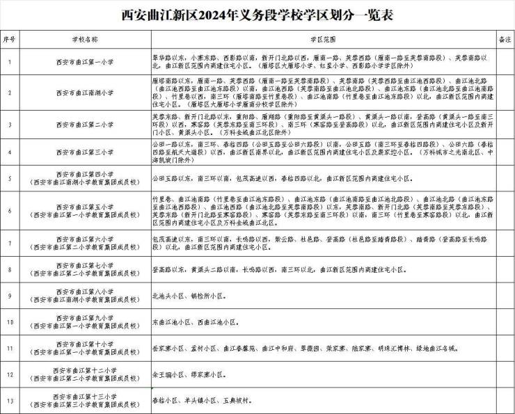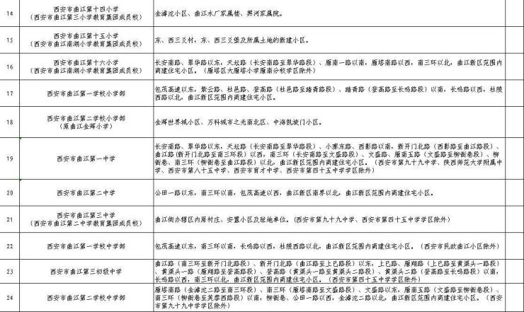 西安(曲江新区)2024年义务段学校学区划分一览表