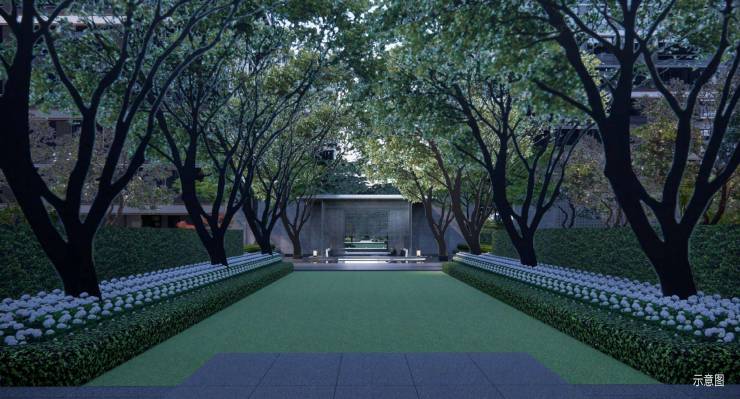 中海·开元壹号丨紫宸在园林布局上打通中轴视线通廊,形成富有仪式感的礼宾轴线,采用传统造园手法,布局现代景观,打造移步异景的游园体验。
