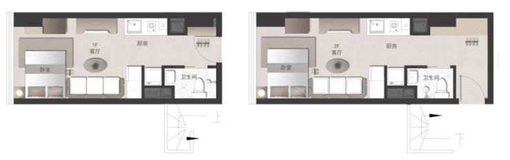 全国首创六合式LOFT,共享楼梯实现双层双门双套房