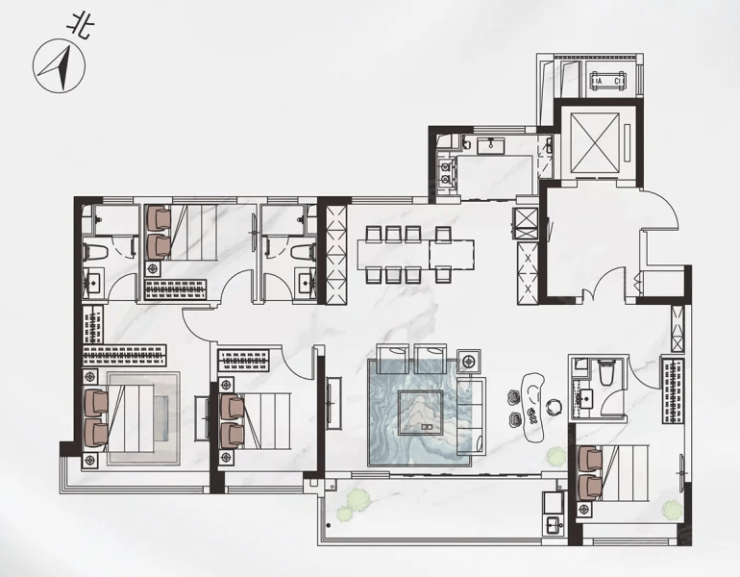 A2户型:4室2厅2卫1厨, 建面143.00m²