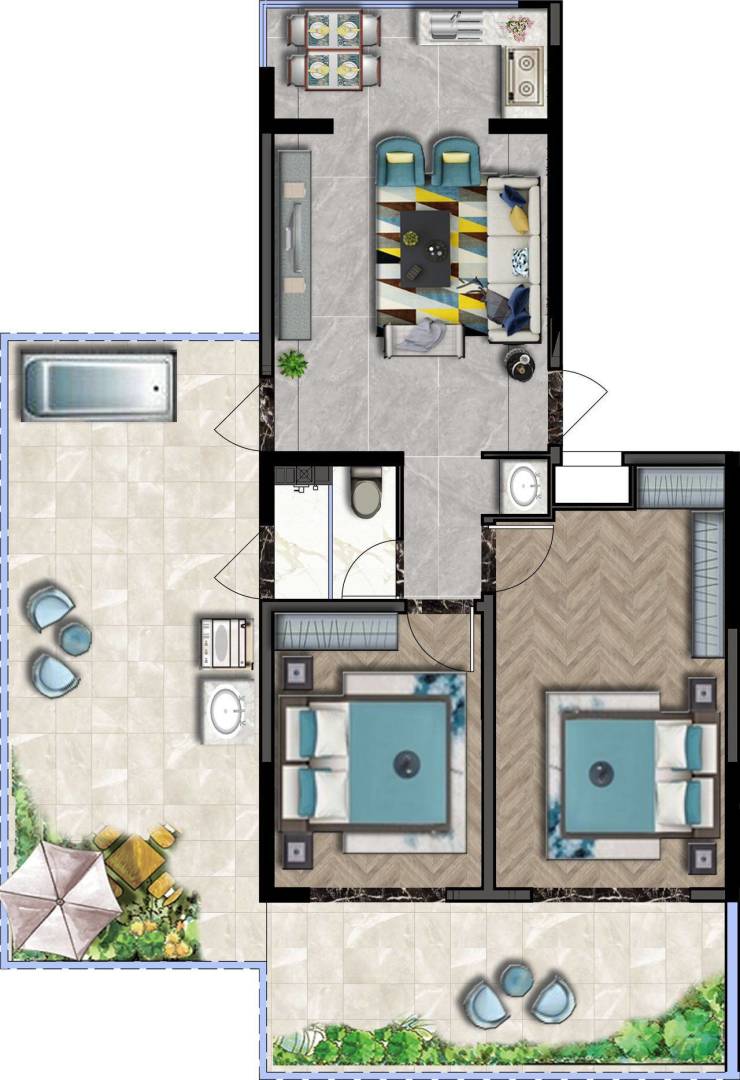 68.36平米,两室一厅送露台