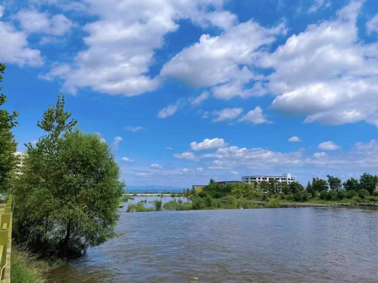 北侧为陕西汤峪龙源国家湿地公园,集聚山景、水景、林景等多种自然风光,是大西安的生态后花园