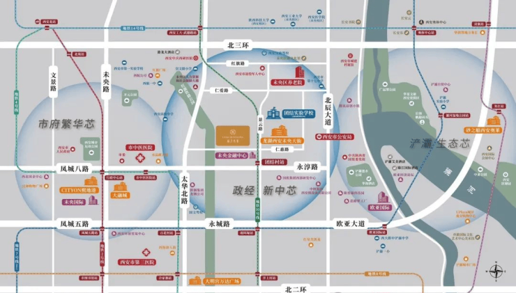 项目所在团结片区作为西安12大重点城市开发单元之一,东接浐灞生态带 西承市府繁华芯,定位“西安政经服务中心”。