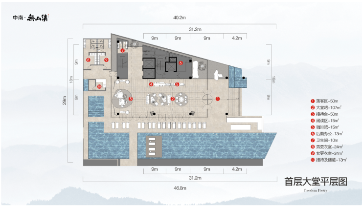1F➡酒店大堂/咖啡区/书吧/露天恒温温泉泳池