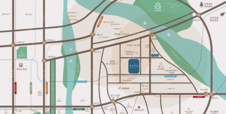 4.生态:项目占据浐河、灞河生态腹地,毗邻灞桥生态湿地公园仅约1.5公里(湿地面积1980亩,绿化面积1650亩),近距离俯瞰灞河水域,还有崔振宽美术馆等。