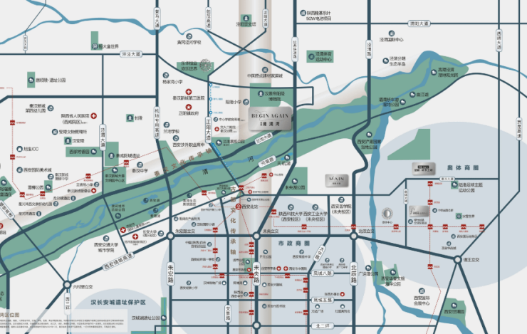 招商雍澜湾位于秦汉新城渭北片区正阳五路以东、兰池二路以南、正阳六路以西、兰尚路以北。交通状况: 地铁14号线-渭河南站、地铁14号线-秦宫站、地铁2号线及地铁4号线-北客站、泾河智轨-兰池二路站。