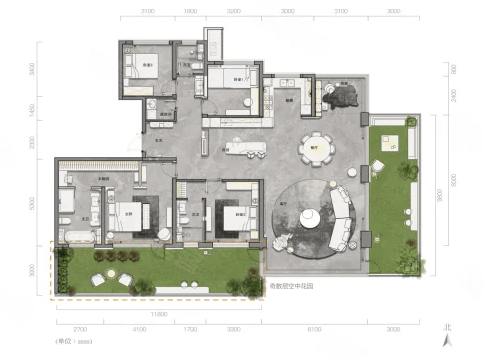 天青雲麓从东方建筑的礼序思想提取灵感,约2.4容积率,规划以中心错落,楼栋起承转合的坊巷礼制铺排开来,大开大合之間,T2低密格局,纯粹改善社区,富有东方禅意的院落式生活成为时代大家诗意日常。
