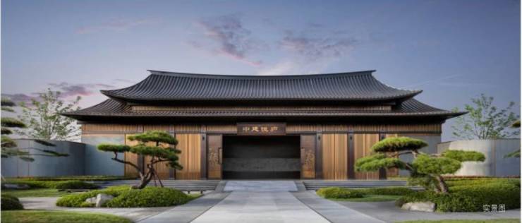 建筑立面重新解构中国传统建筑元素以横向线条突出重檐气势,一体化框线打造纵向动势,纯粹至简,以极度视野和采光,呈现当代美学立面景观。