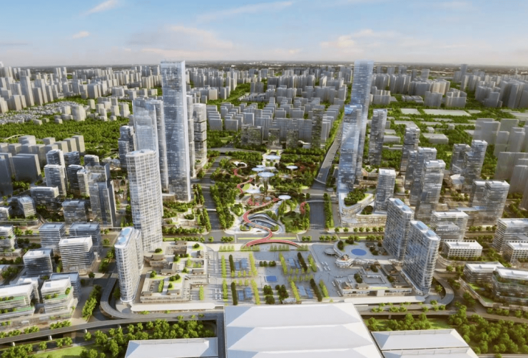 在这个位置有两个地块,一块位于尚稷路北侧、草滩二路东侧,约188亩,一块位于尚稷路以北、草滩一路西侧,44.964亩,这两个地块是同时绿地集团2020年10月同时竞得。同时在北客站南广场竞得一块商业地块——绿地之心!