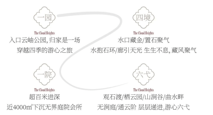 中铁·云岫曲江,以“天人合一、无界交融”理念,开创性打造“立体游弋”无界园林,由外至内,一园、一院、四境、六弋层层迭进,打造“无界天地任逍遥”的栖心世界。