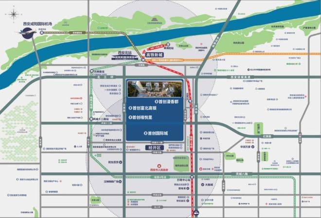三、交通配套首创中心位于三环内,距离西安北客站1.2公里,片区内规划及在建多条地铁,公共交通及道路情况良好。
