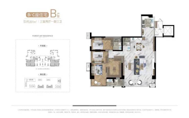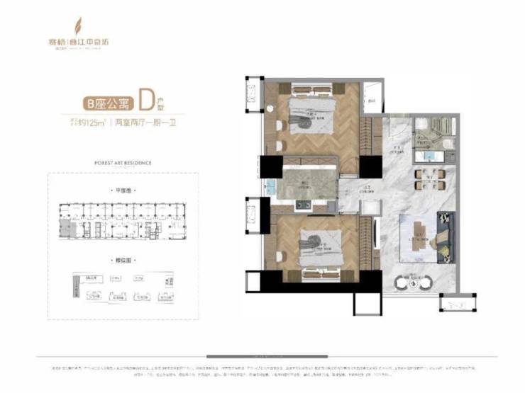 公寓产品中,A栋公寓为一栋约140米高、42F的超高层产品,其中33—42F打造的是建面约500㎡的总裁公寓,产品共计有30多套,单层层高3.9米,客厅挑空7.8米,一梯一户,一层两户,独享五星级入户大堂,2—32F则是约50—161㎡、 4T24户的平层公寓产品。B栋公寓为建面约50—129㎡、6T23户平层产品;C栋公寓为建面约80—120㎡、 4T12户平层产品。