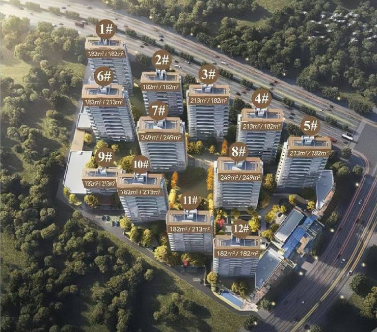 项目占地64亩,容积率2.79,共12栋楼,产品为纯改善第四代住宅,面积段186-249㎡,总高21-25层。整个小区纯2T2户社区,户户360°景观环绕。做到了,大格局、大尺度、大视野。 立面采用”湾流G700“平滑的曲线机翼,定制楼体天空之翼的顶冠造型。南立面玻璃幕墙+栏板占比高达95%。 规划有1350㎡休闲活动场所(一期会所1000平),打造顶级私属俱乐部,提供酒店式度假体验,同时也是专属的水苑客厅。下沉庭院漫卷成集九大功能(休闲水吧、艺术书吧、禅意茶室、尊享私宴、棋牌娱乐、健身、恒温泳池,瑜伽、独立地库光厅等)空间于一体。