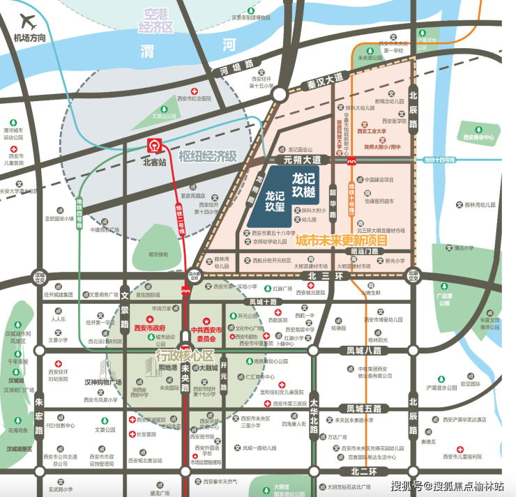 医疗:北城医院、西航医院、西安市中医医院、西安市红会医院、西安市儿童医院经开院区
