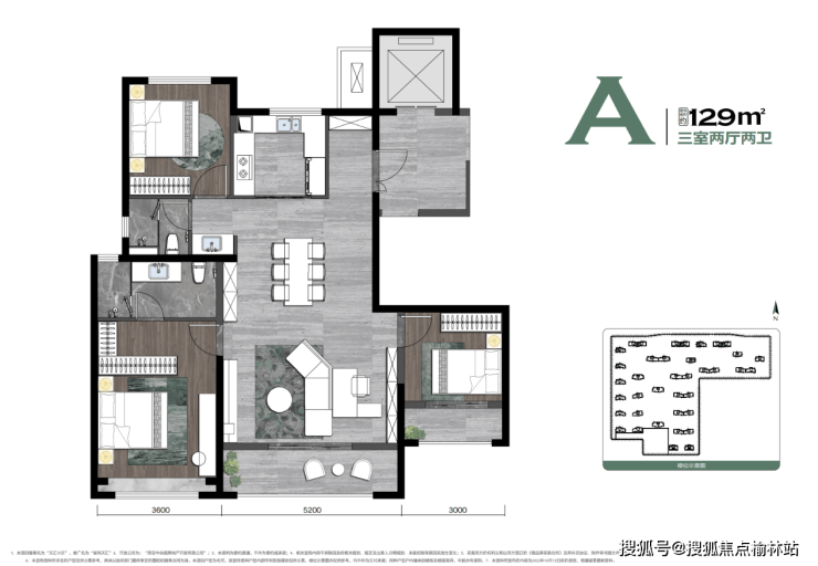 客厅+次卧双阳台设计,主卧全景飘窗设计,高赠送空间