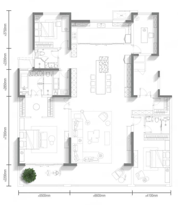 4室2厅3卫1厨, 建面290平米