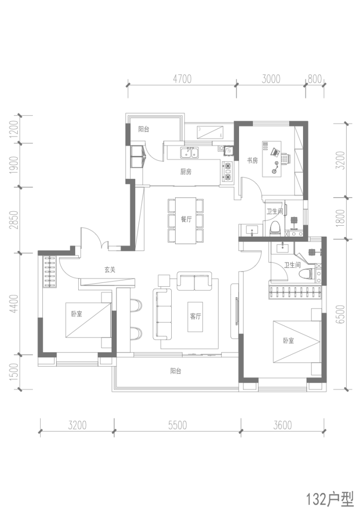打造了“西派系”非常少见的小户型产品,其中132平米户型设计独特,三室两厅两卫,户型方正、南北通透且全明。