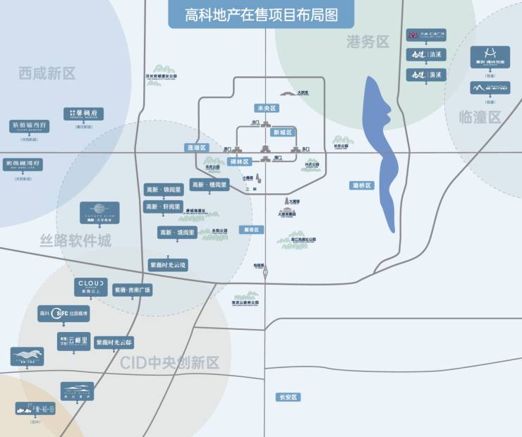稀缺生态资源,城市生活绿肺:皂河生态公园、唐城墙遗址公园、西安人才公园、丝路软件城创享绿心、沣惠绿道。