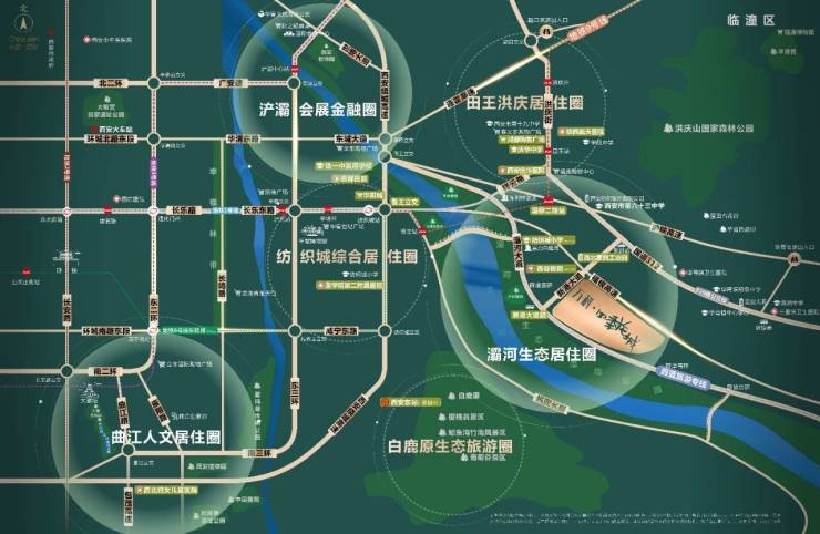 生态:紧邻灞河河谷湿地生态公园景观带、灞桥生态湿地公园、华胥陵、樱花谷。