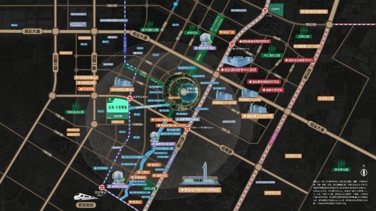 长安中心一一新西安南站,链接地铁6号线、16号线、12号线,总投资约170亿元,规划11台22站车,路线覆盖重庆、武汉、成都、长沙等地