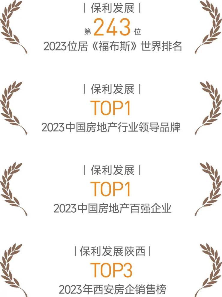 保利发展控股集团股份有限公司(SH600048),简称保利发展控股,成立于1992年,是中国保利集团控股的大型上市公司。2023年,保利发展控股位居《福布斯》世界排名第243位,行业领导品牌TOP1,并荣膺《2023中国房地产销售额百亿企业排行榜》TOP1。保利入陕12载、围绕古都恢弘落笔20子,储备土地近2000余亩,以住宅、物业、公寓、商业、办公等多元业态场景与城市同行共生,为盛世塑造高质量人居产品名片。