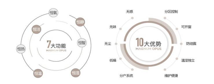 全屋采用了全球先进的维瓦尔第智能一体化分户式七恒科技系统,拥有恒温、恒湿、恒氧、恒洁、恒静、恒智、恒热七大功能,赋能健康人居生活,全方位呵护业主日常生活。
