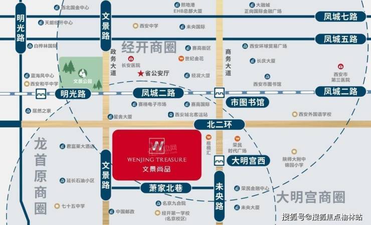 文景尚品位于北二环与文景路交汇东南角,北临北二环,东临未央路,西临文景路,南至萧家北巷,由天元地产开发。项目紧邻北二环,可驾车通达全城,北侧约600米即是西安城北客运站,有稳定的人流量。同时项目约200米内还有33、108、182等多条交通线路便于出行。